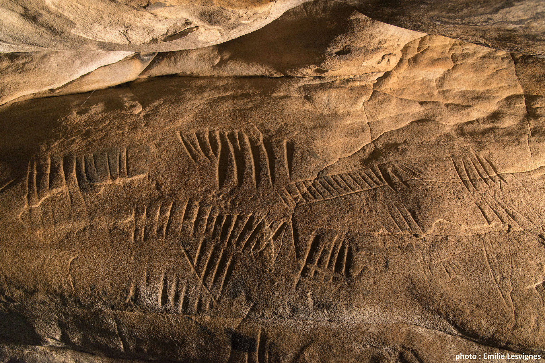 Les gravures découvertes dans les chaos de grès du sud de l’Île de France sont connues depuis la fin du XIXe siècle. Certaines, constituées de motifs abstraits et rectilignes, pourraient remonter au Mésolithique (Xe-VIe millénaires avant notre ère). Pourtant, leur datation a longtemps fait débat, limitant les interprétations de ce phénomène symbolique sans équivalent à l’échelle européenne pour cette période.